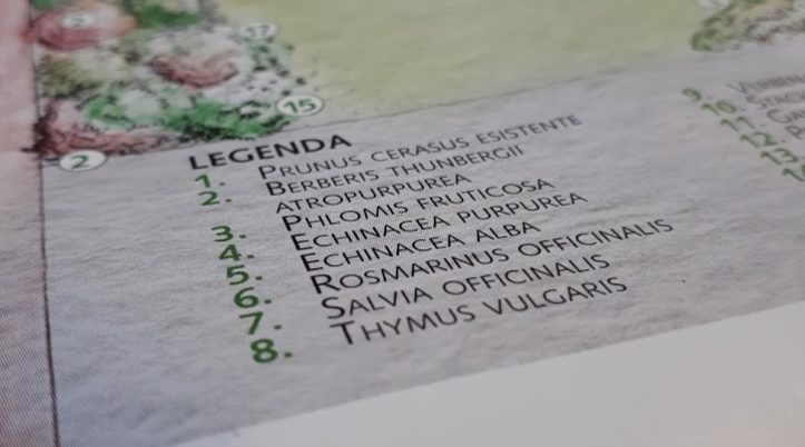 Per creare un bel gruppo vivace e ricco di foglie profumate saranno inserite alcune piante aromatiche come Salvia officinalis, Thimus vulgaris, Rosmarinus officinalis e per aggiungere un tocco di fiorito colorato, prenderanno posto Echinacea purpurea, alba, Salvia nemorosa e Stachys lanata (chiamata “orecchie di agnello” per le foglie spesse e lanuginose che le conferiscono una colorazione argentea particolare).