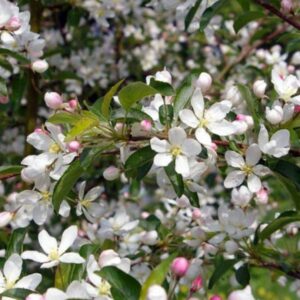 Il melo da fiore, malus comtesse de paris, è un albero a portamento eretto o arbusto deciduo della famiglia delle Rosaceae. La colorazione delle foglie in autunno presenta colorazione rosso ambrato intenso fino a perderle definitivamente in inverno inoltrato. Nei mesi di marzo e aprile sboccia in fioritura bianca producendo a fine estate frutti ovoidali commestibili presenti nei rami.