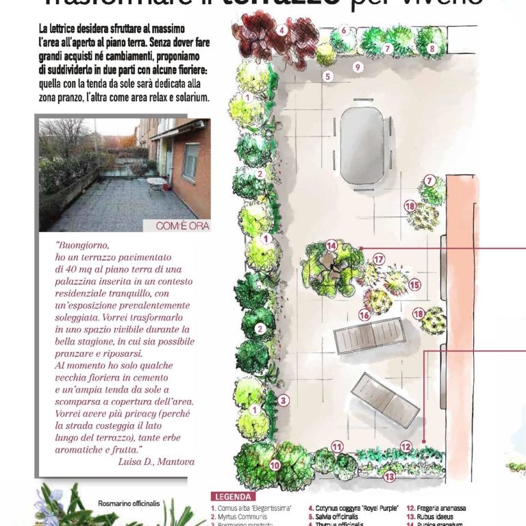 Siamo lieti di comunicare che ogni mese in edicola, all’interno della nota rivista “Casa in fiore”, troverete uno spazio dedicato alla progettazione e alla rivalutazione di terrazzi e giardini, una sorta di rubrica del “prima e dopo” curata nel disegno e nel progetto dalla nostra Garden designer, Marta Prosello.