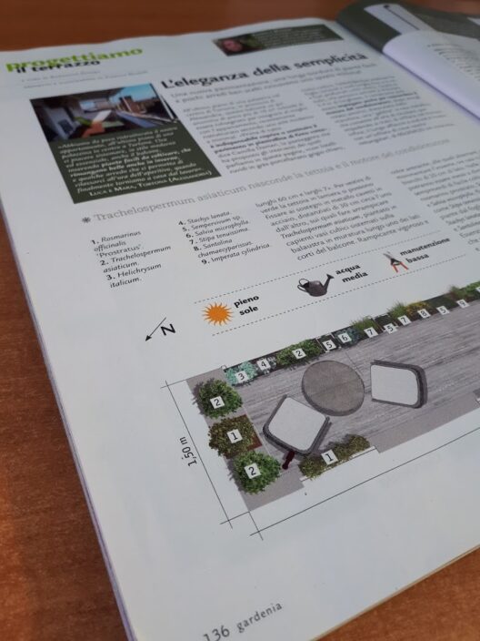 Piantumeremo all’interno sempreverdi di facile coltivazione come Rosmarinus officinalis prostratus, Sempervivum, Salvia microphylla, graminacee come Stipa tenuissima e Imperata cylindrica e piante dal fogliame grigio quali Stachys lanata, Helichrysum Italicum, Santolina chamaecyparissus.