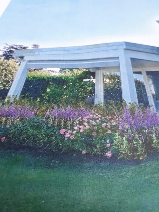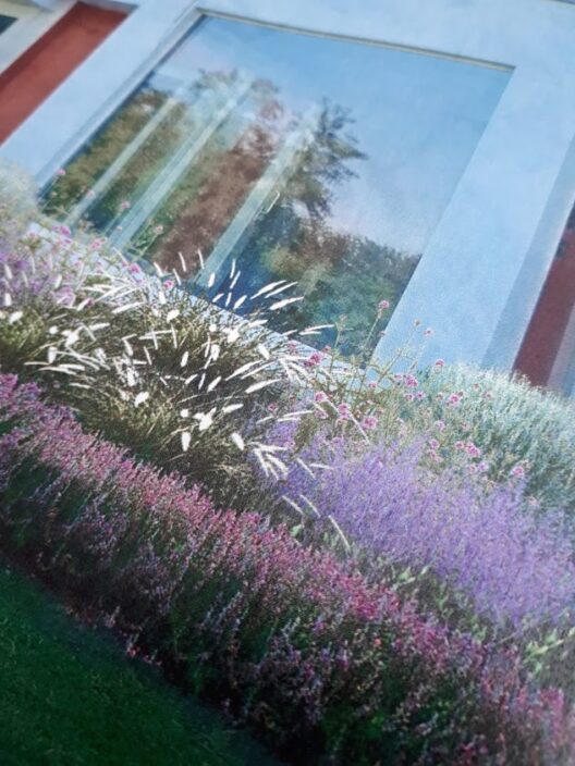E’ prevista la riqualificazione di un’aiuola con siepe di bosso e rose attraverso l’inserimento di perowskia atriplicifolia e la sostituzione dei bossi con osmanthus rotundifolia che regaleranno un aspetto meno formale.