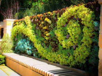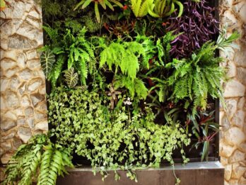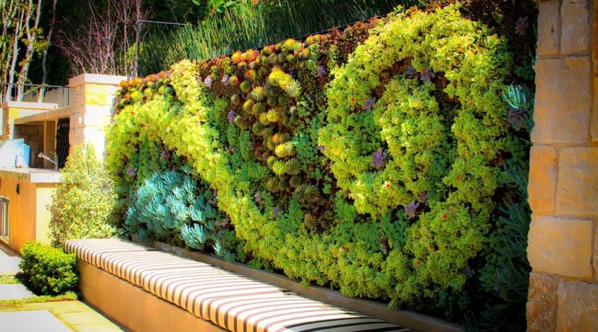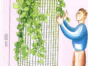 Con le piante, sorrette da apposite strutture verticali di sostegno e reti, si possono realizzare insiemi molto raffinati di composizioni verticali di verde ornamentale, come nel caso del geranio.