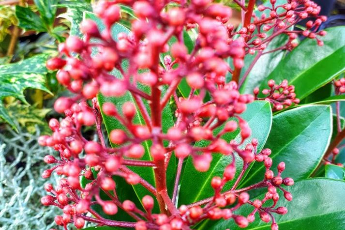 La Skimmia japonica è una pianta arbustiva sempreverde della famiglia delle Rutacee, originaria del Giappone, e in questo periodo dell’anno ci regala un toco di colore autunnale insieme alla Camelia…